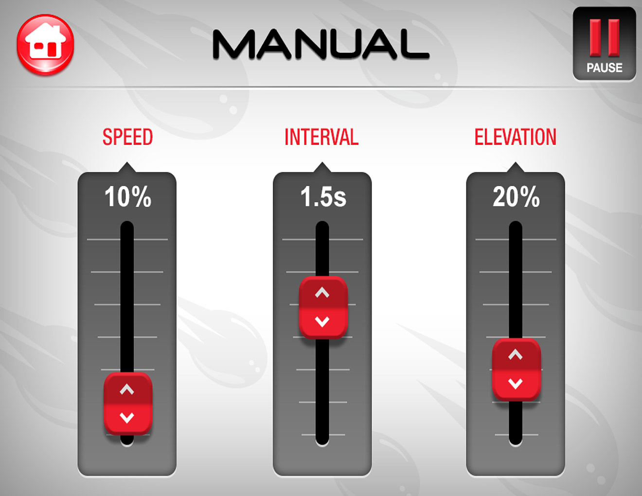 RANDOM DRILL: Give the Cannon control to randomly shoot balls and teach players to watch the ball and improve their reaction time. The maximum and minimum intervals are selected by the user and the Cannon will randomly select an interval between this maximum and minimum.